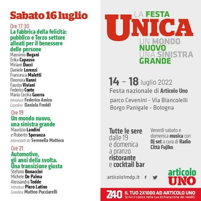 Stasera Roberto Speranza e Maurizio Landini a #Unica, la Festa. Vi aspettiamo a Bologna e sui nostri canali social
