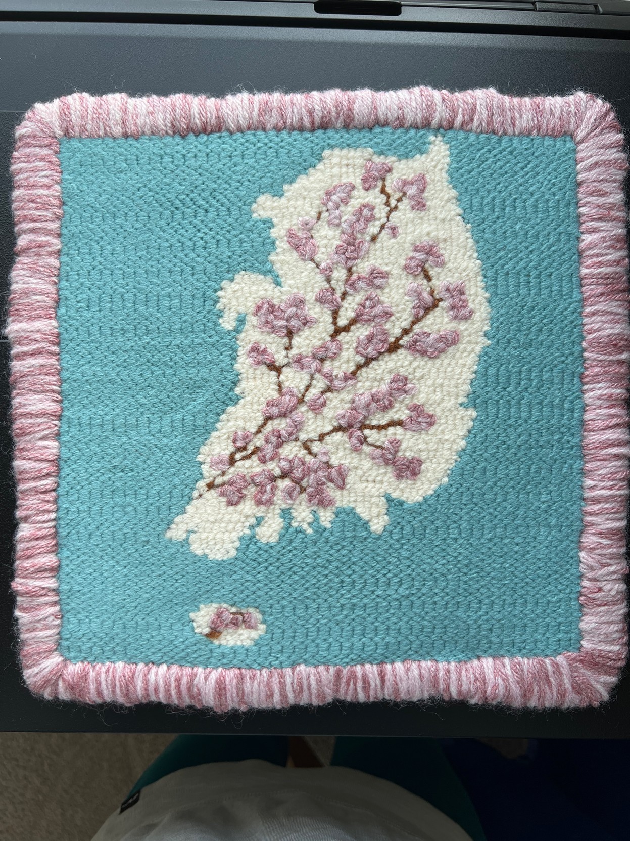 Finished my first #punchneedle project! It’s South Korea with cherry blossoms 🇰🇷 I used heavy wool yarn and for my next project I’ll be using DMC floss, from one thickness to another 🤣