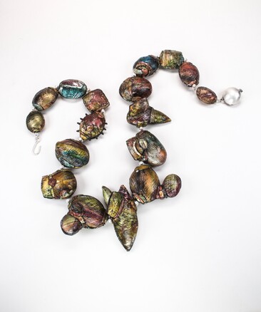 Necklace in polymer clay hollow forms. #2Roses #!PCA #artjewelry #Corlite #polymerclay