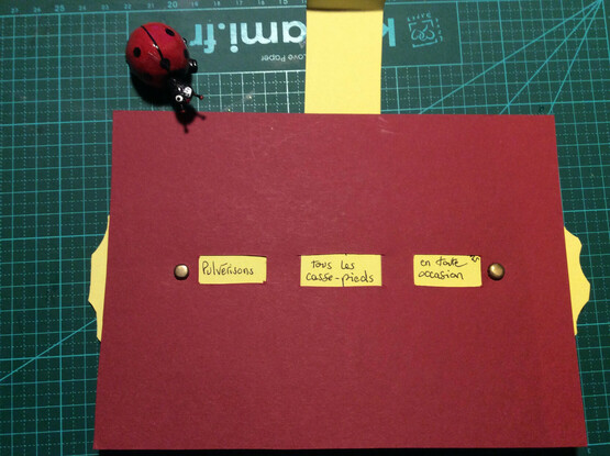 Deux petits textes accordéon, ici le jaune, plus facile à mettre en évidence que le bleu. À noter le semeuse à 0euros officiellement oblitéré. Merci la poste de jouer le jeu.