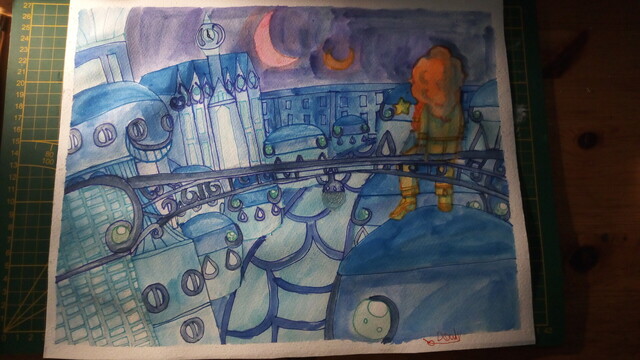 Je poste une dernière grosse aquarelle avec ce papier, elle me plaît quand même bien malgré la difficulté à faire l'aquarelle dessus
