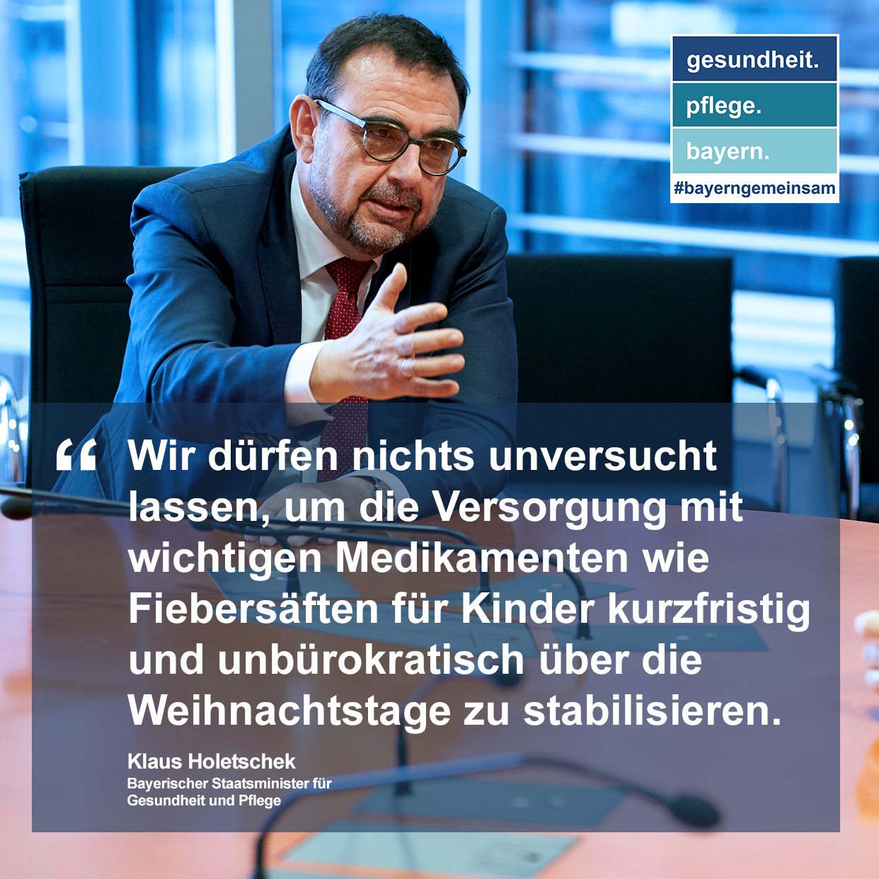 Holetschek: Pragmatische Regelungen in Bayern bei Engpässen von Kinder-Arzneimitteln – Bayerns Gesundheitsminister schafft mit „Taskforce Arzneimittelversorgung“ unbürokratische Lösungen.
