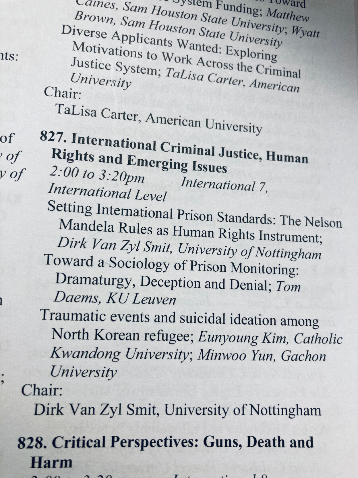 Today (18.11) at 2 p.m. > presenting in a session on #humanrights #prisons #prisonmonitoring #refugees chaired by Dirk van Zyl Smit๐ #ASC2022