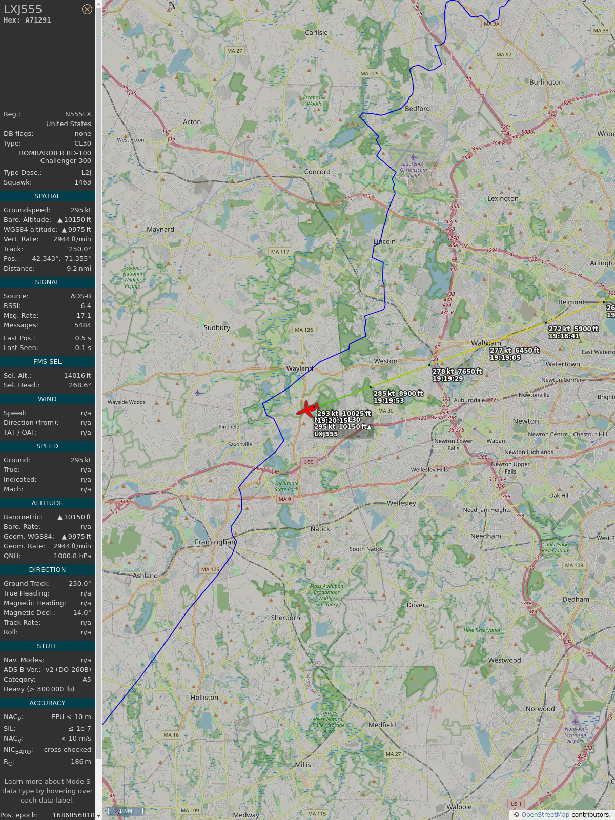 #a71291 #lxj555 #bombardierbusinessjetsolutions #sun #ase #planefence #adsb