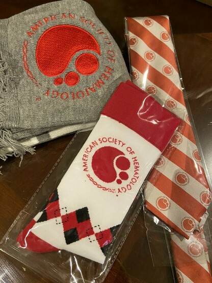 Make sure to check out #ASH22 #ASHCentral for latest ASH #fASHion accessories! I love my new #ASHSocks and #ASHTie ! @ASH_hematology@twitter.com | @KMirza@twitter.com @acweyand@twitter.com @AaronGerds@twitter.com @PedsHemeDoc@twitter.com
