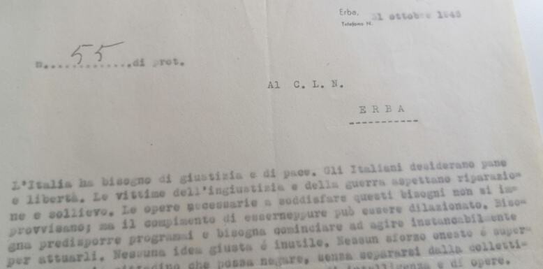 [Estratto di lettera dattiloscritta, datata 31 ottobre 1945. Archivio di Stato di Como - CNL 22 C 5]