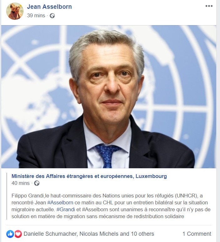 Hospitalised @MFA_Lu@twitter.com Jean #Asselborn receives @RefugeesChief@twitter.com Grandi for a bilateral meeting ... in hospital ....