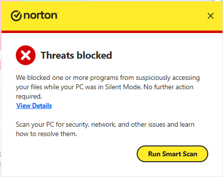 Norton Antivirus using scare tactics to get you to run a scan. This has happened to me a few times now and every time it has resulted in the same thing: nothing showing up in security history.