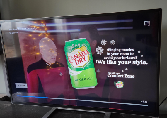 Paramount Plus show advertisement Canada Dry Ginger Ale on smart TV screen