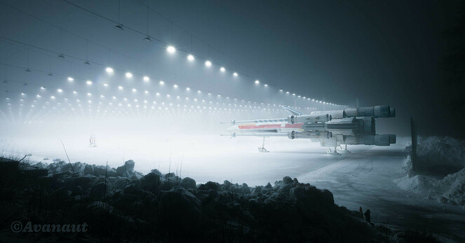 #starwars #spaceship #spacefiction #xwing #miniature #scalemodel #toy #toyphotography #fog #snow #winter #astromech #droid
