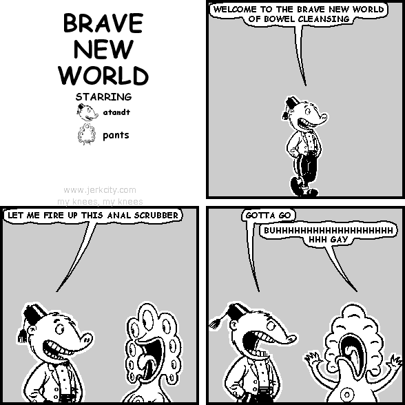 Today in BoneQuest History for August 21st 2007 "BRAVE NEW WORLD" https://bonequest.com/3214 #bonequest :pants: #aldous_huxley #anal #atandt_pants