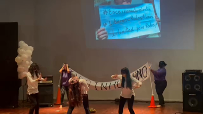 Presentación de las Comadres Púrpuras exigiendo la libertad de todas las presas y presos políticos en Venezuela.