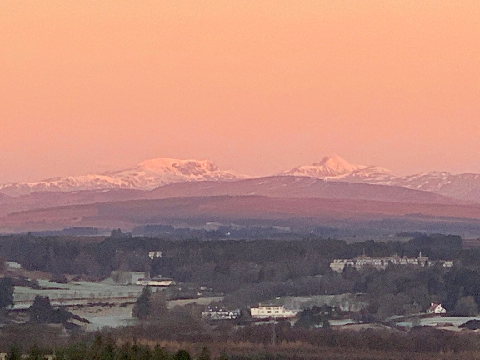 Good morning. Hope you’re keeping warm out there in the Fediverse. This photo was taken from a horsebox, with my phone, looking towatds Auchterarder. March 2022 -4C. Not the best of shots, granted, but it was spectacular to see.
