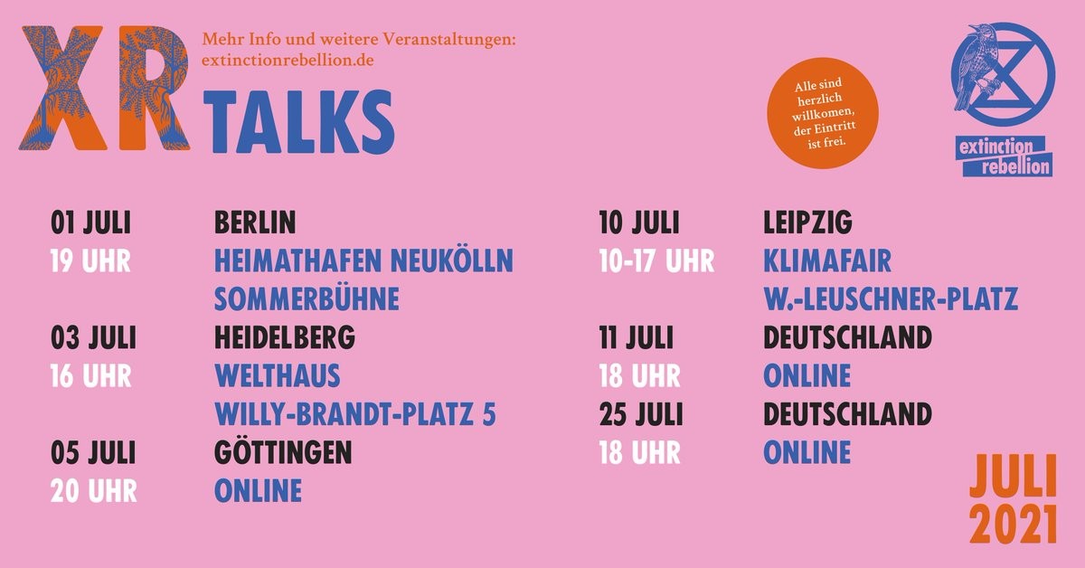 Details zu den Events findet man unter http://extinctionrebellion.de/veranstaltungen