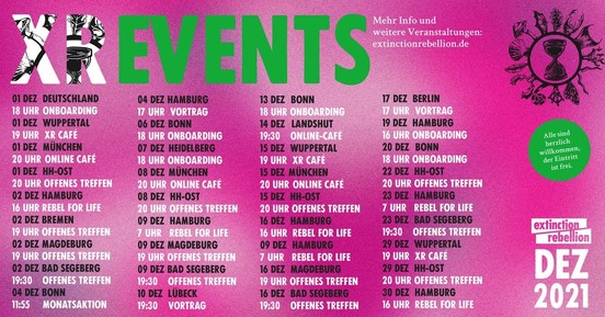 Terminübersicht für die #ExtinctionRebellion-Treffen im Dezember