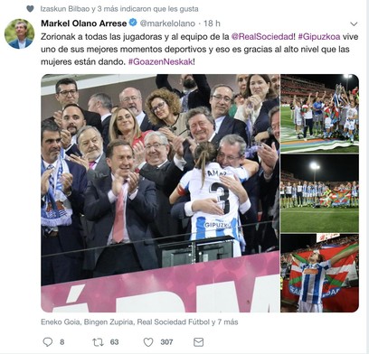 Markel Olanoren estiloa. #AupaNeskak Errealarekin eta futbolarekin. Alardeekin, matxismoa festa bizitzeko beste modu bat da. #ZuriketaMorea