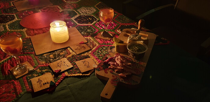 The heat has gone off the day and enjoying leftover ham with cheeses and dips. 21 degrees and breezy.