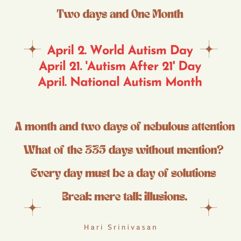 We got a new day now "Autism After 21" on Apr 21 to recognize that autism does not magic away in adults.