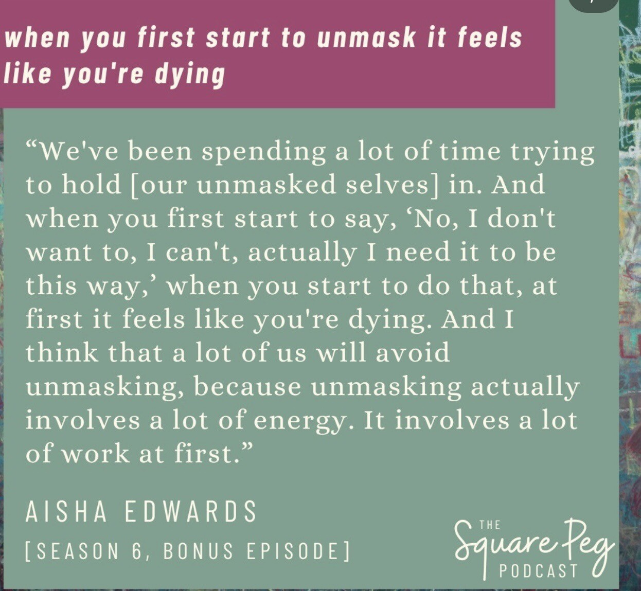 It’s worth being uncomfortable, while you adapt to being unmasked. I’m not saying you should unmask for everyone. But I’ve found I can unmask, regularly, around other people. It feels so good to be my own damn self!