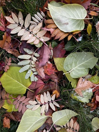 A few minutes from home there's an ornamental oak tree. It puts on a show this time of year when its leaves turn and drop to the ground. I always enjoy scuffling through the leaves – somewhat like a kid walking to school!