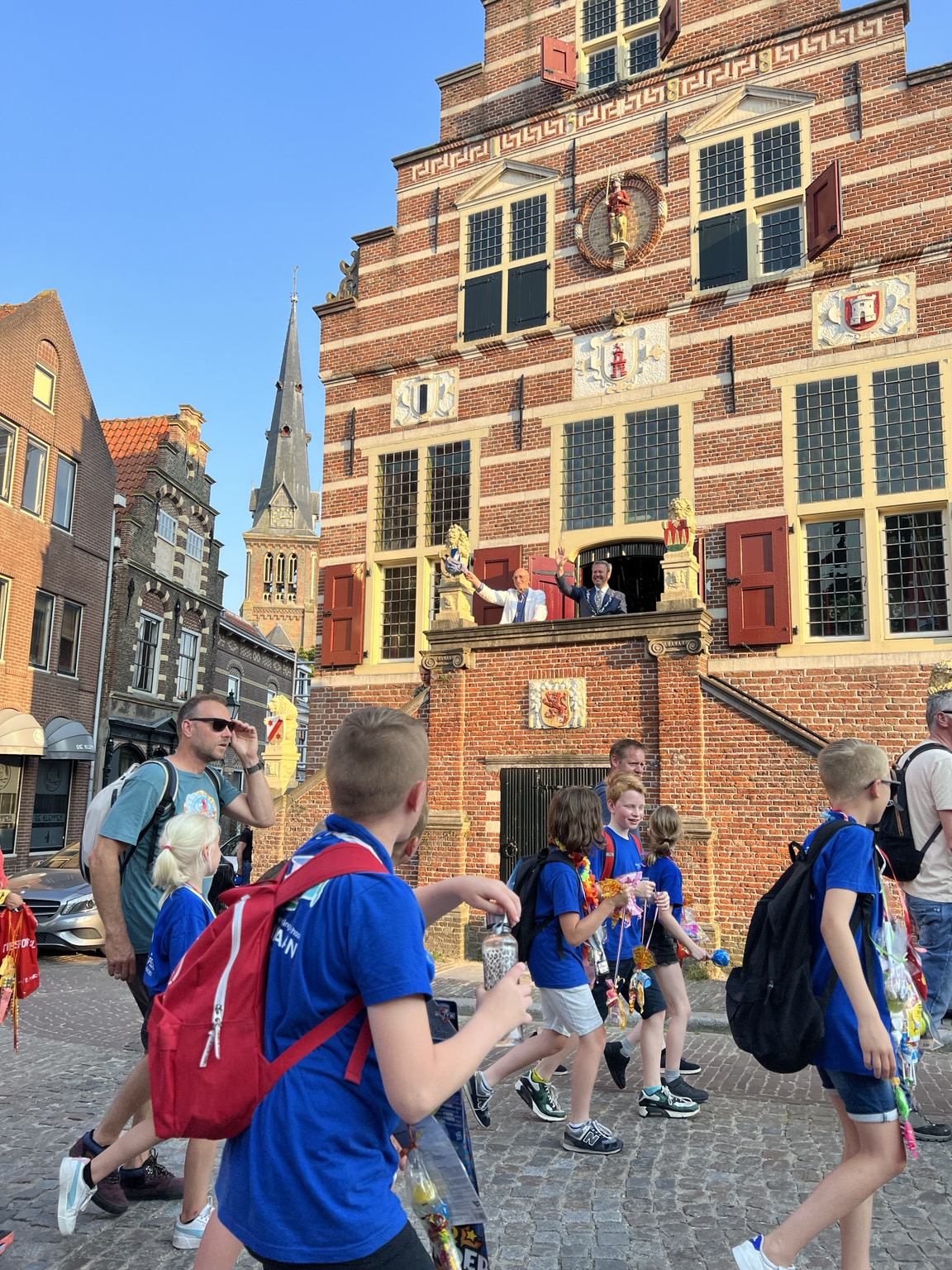Yesterday in #Houten, a town of 55,000 south of #Utrecht the week-long walk culminated in a parade of 3500 school kids, some looking pretty tired after 20k or 40k walks. Kids marched thru a bevy of brass bands, adoring parents & grandparents to get a high-five from Houten Mayor Gilbert Isabella. So much joy.