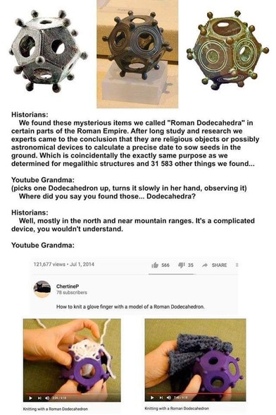 Es de los mejores ejemplos de arqueología experimental. #dodecaedro romano usado para tejer la parte te los dedos de los guantes, como los actuales aros para tejer de plástico. #awesomewomen #womeninhistory https://youtu.be/76AvV601yJ0