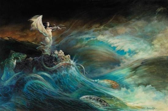 Many a fisher-man from Turnberry met a watery end attempting to follow the haunting melody from the rocks where the Sea People would bask in the sun. The singer, a Sea Witch lamenting her own children lost to the sea.