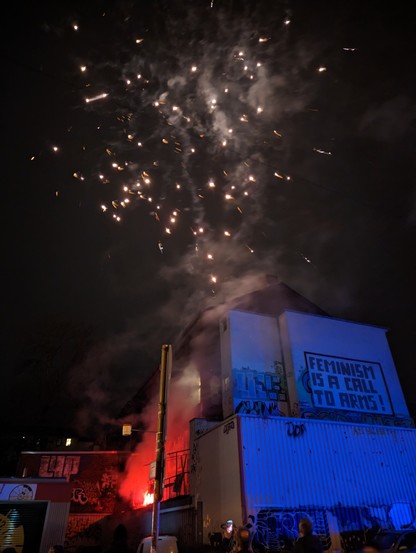 Ich habe euch das Ende nicht verraten. Gegen 23 Uhr ist die Demo am AZ Wuppertal angekommen. Da gab's Feuerwerk und noch eine Rede zu Ditib und der geplanten Stadtteilaufwertung. #AZGatheBleibt