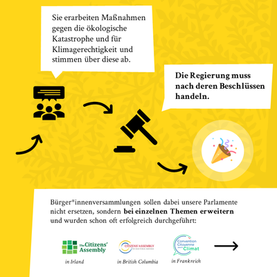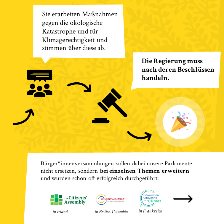 Die #BürgerInnenversammlung erarbeitet Maßnahmen gegen die ökologische Katastrophe und für Klimagerechtigkeit, die sie durch Abstimmung gewichten.