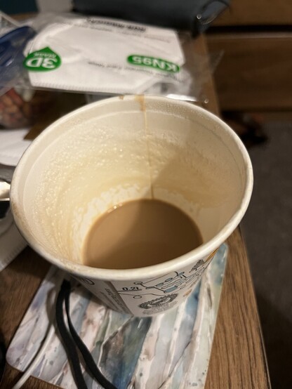 Honest scenes from travel: shitty McDonald’s coffee from the only goddam place that’s open at 6am. KN95 masks. Melatonin.