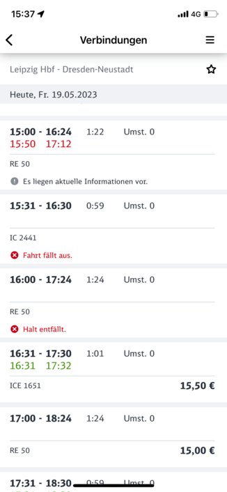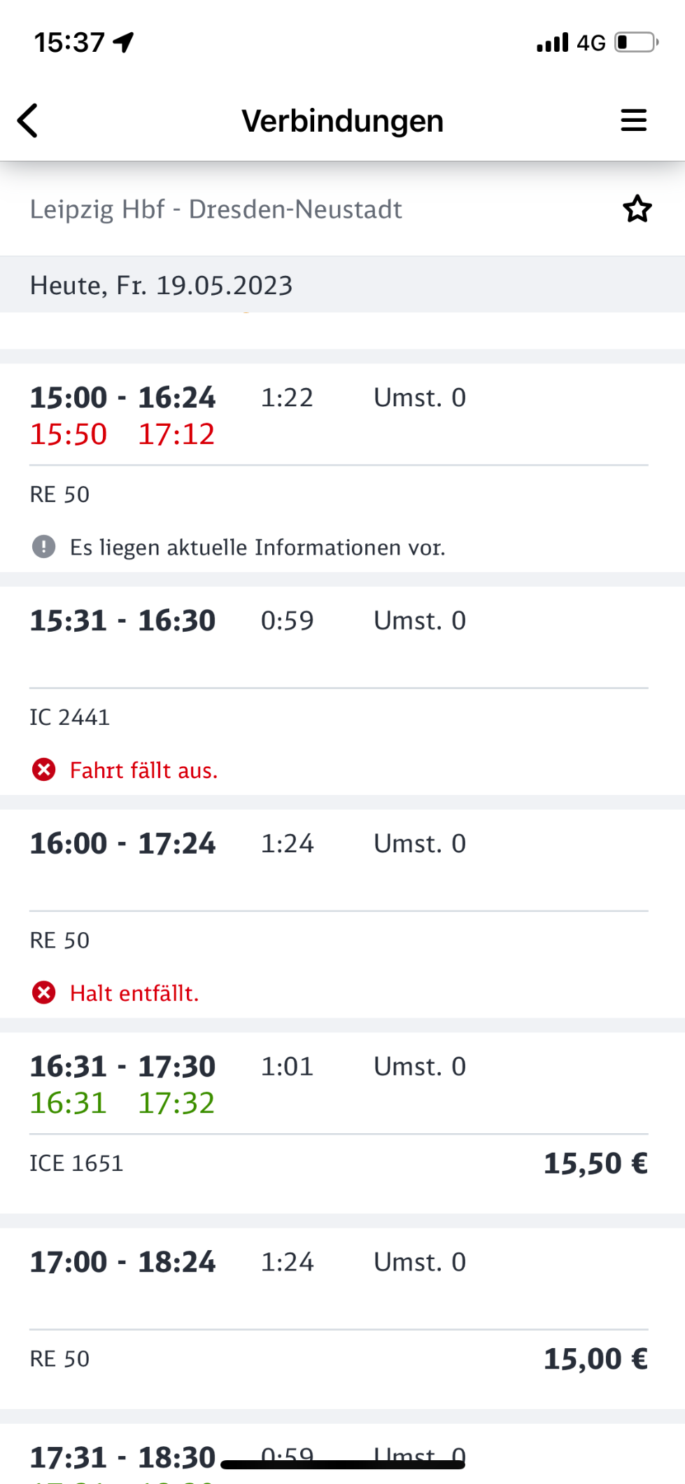 Diese Woche : Münster - Dresden - Münster=> 3 gebuchte Fernzüge, *alle* ausgefallen oder nicht durchgefahren...🫣