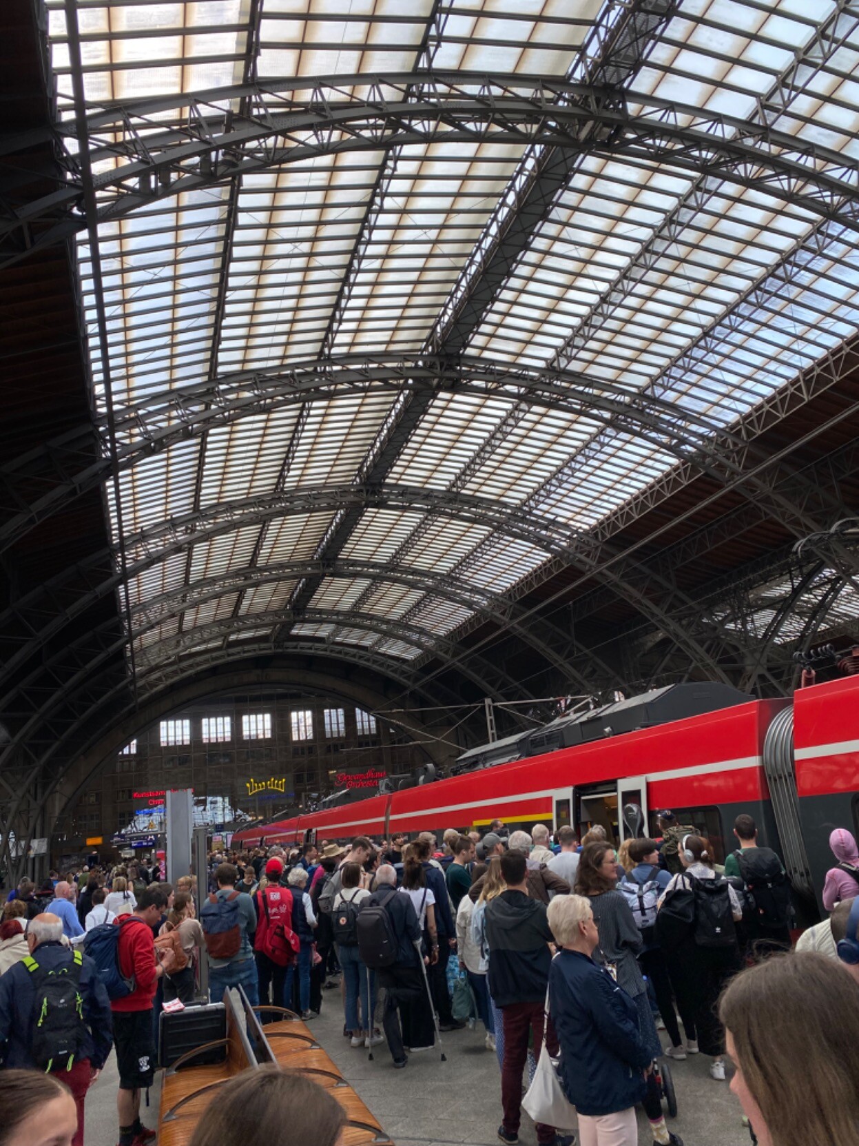 Erst #BlumenAmWegesrand, dann Rückreisewelle müder #WGT-Menschen… wird‘ne ganz ruhige Fahrt. #Bahnzeit #Pendlergetröte