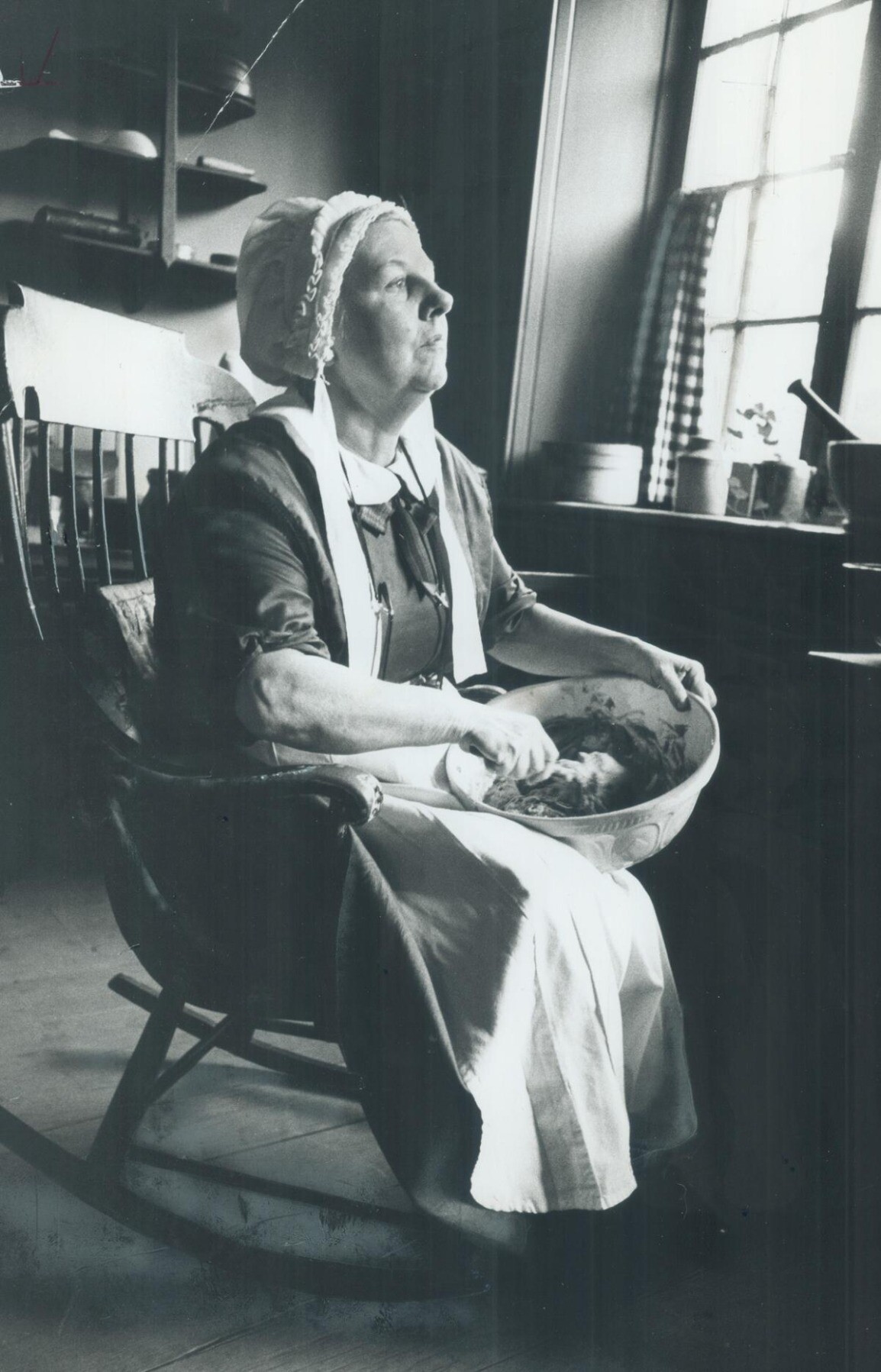 Joan Seymour mixes up cookie batter for baking some tasty treats while part of the Victorian Christmas event at Mackenzie House, home of William Lyon Mackenzie on Dec. 22, 1976.