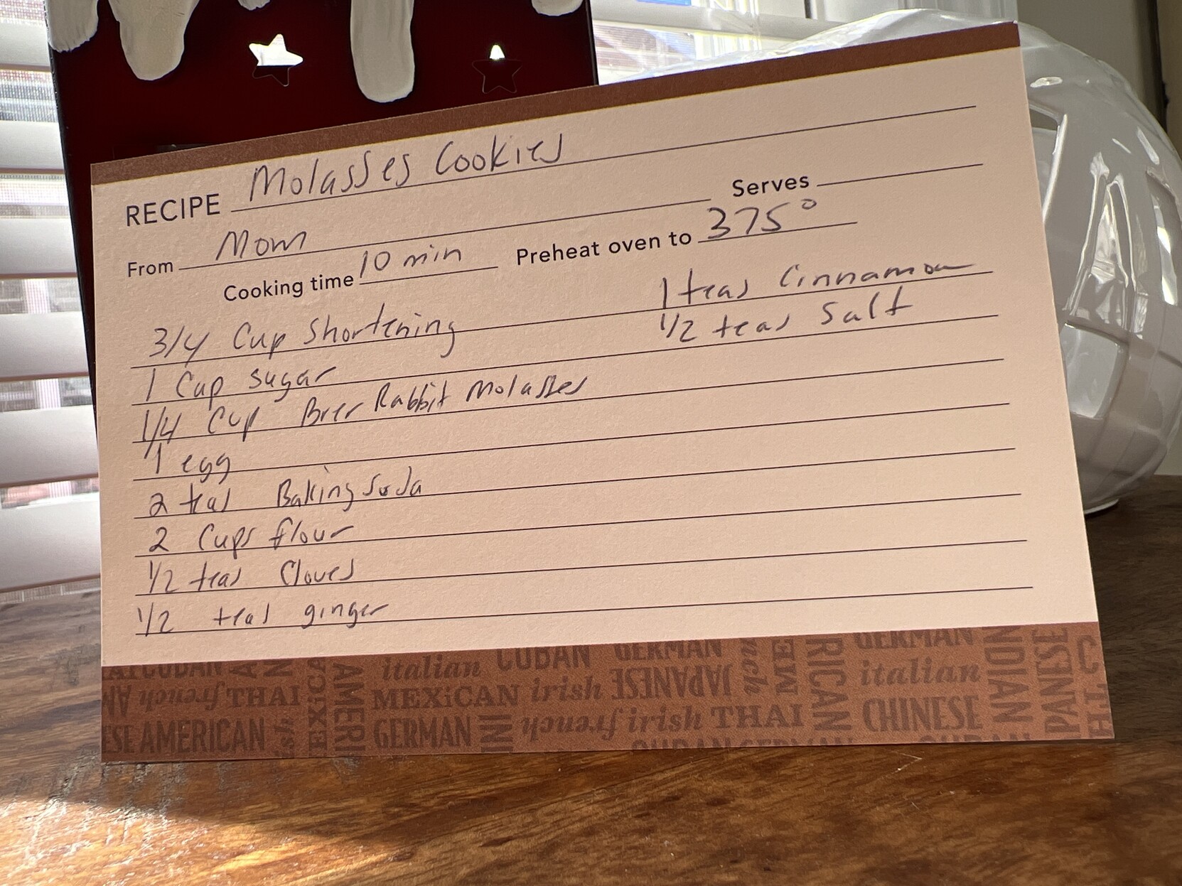 Here are my favorite seasonal 🍪! Molasses Cookies!! Hope you can read my chicken scratch! Should’ve been a Doctor. #molasseecookies #cookies #baking #TisTheSeason #bakingit #spicedcookies #softcookies