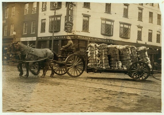 #Bales of cotton going to the mill. Location: Fall River, #Massachusetts