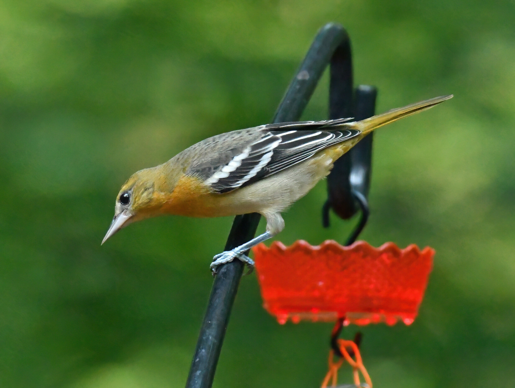 Special visitors to the feeders today: the Baltimore oriole and the ruby throated hummingbirds. Both will be gone to the south soon, so I find myself appreciating them more than usual. #birds #birding #birdsofmastodon #birdphotography #nature #naturephotography #baltimoreoriole #hummingbird #photography