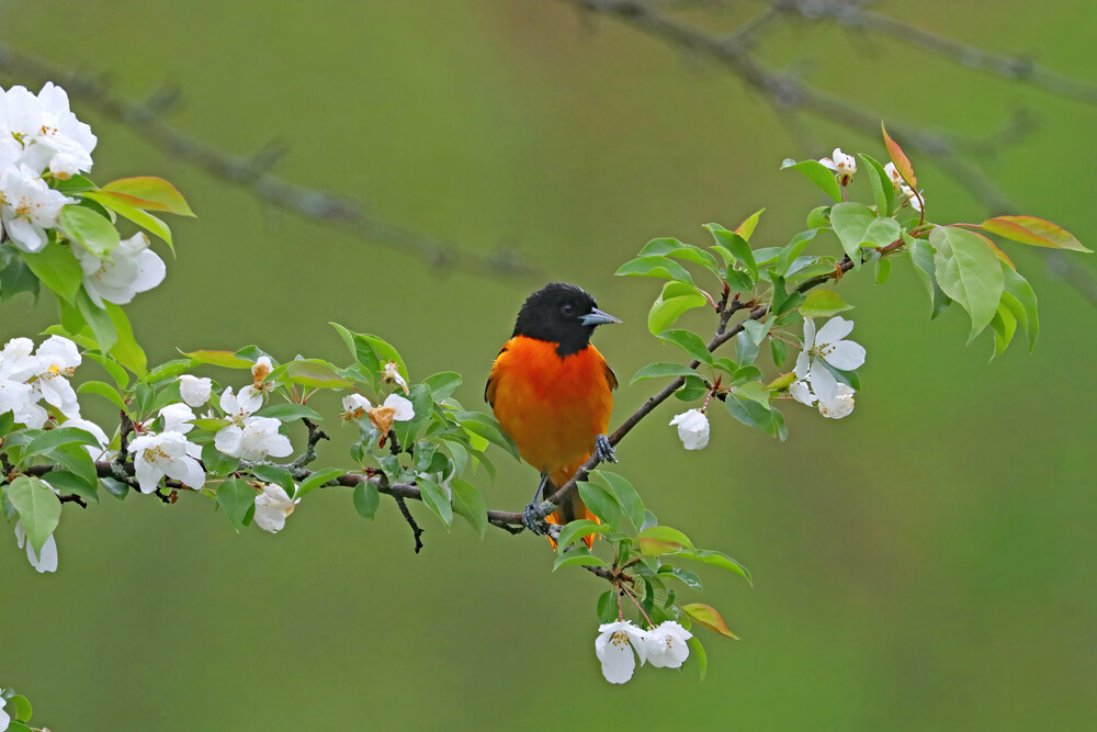It was a great spring with the abundance of Baltimore Orioles in Guelph Ontario Canada. The males are so handsome and this one perched on the branch of the spring blooming white blossom tree was a beauty.