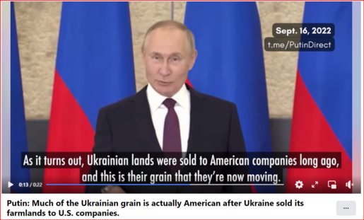 Putin: Much of the Ukrainian grain is actually American after Ukraine sold its farmlands to U.S. companies.