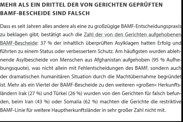 Betroffene soviel schikanieren, dass sie aufgeben. Oder sie haben nicht so viel Glück mit 'Sachverständigen' und/oder Anwält*innen. Dann kann abgeschoben werden und das #BAMF schmückt sich mit der Statistik.
