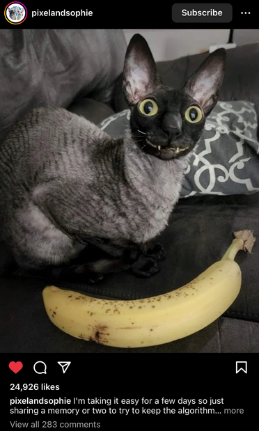 There has been some discussion about the size of an influencer cat named Pixel. This post was clearly made to end all debate. #PixelAndSophie #InfluencerPets #BananaForScale