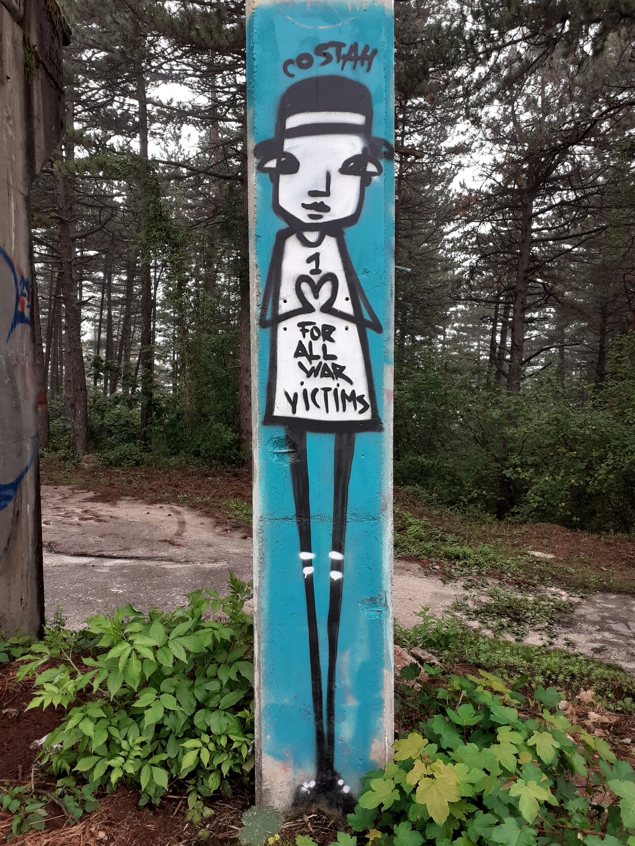 Giusto chiudere così quest'ultimo giorno a #Sarajevo. Murales "per tutte le vittime di guerra" direttamente dalla pista di bob delle olimpiadi dell'84.