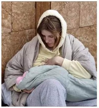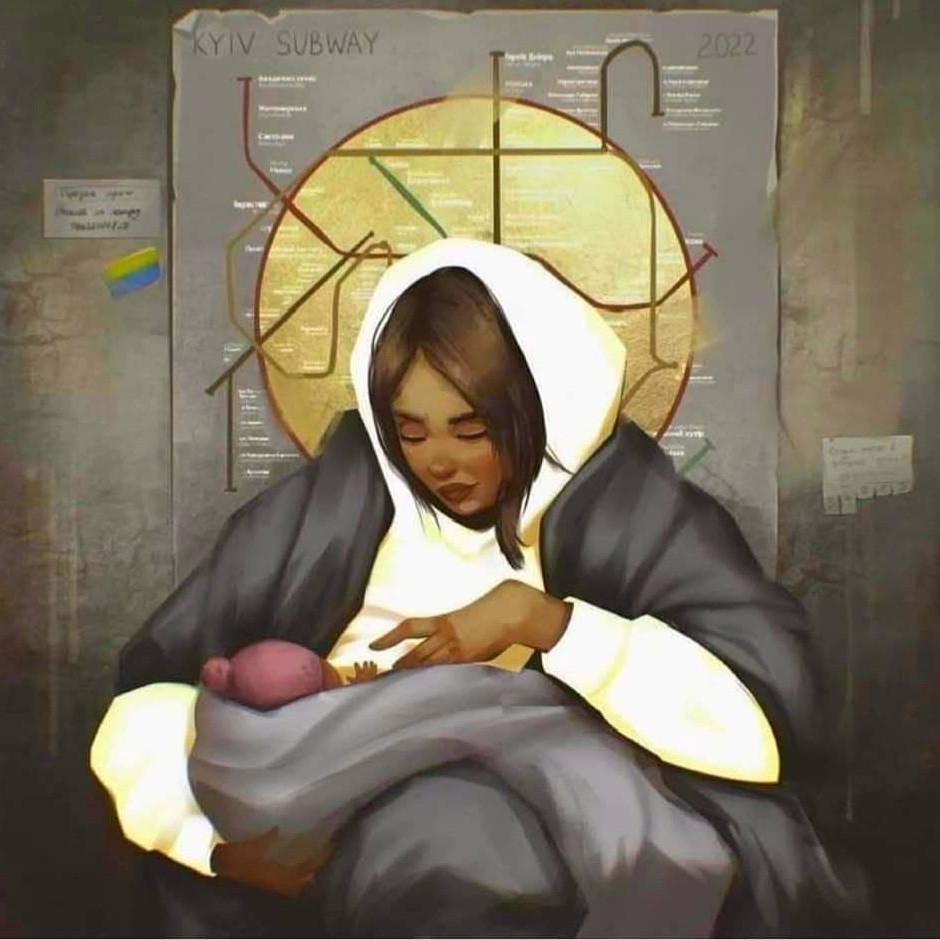 La Madonna di Kyiv, un'immagine davvero potente, ispirata dalla foto di una donna che allatta il figlio nella metropolitana.