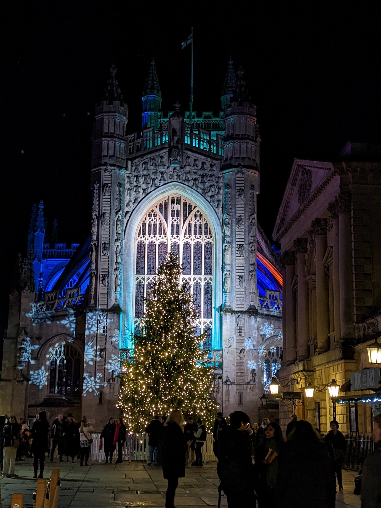 Ok so here's a photo taken in Bath, the Cathedral and Christmas tree