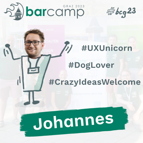 #graz #barcamp #teambcg23 #bcg23 #meetjohannes #crazyideaswelcome #doglover #uxunicorn