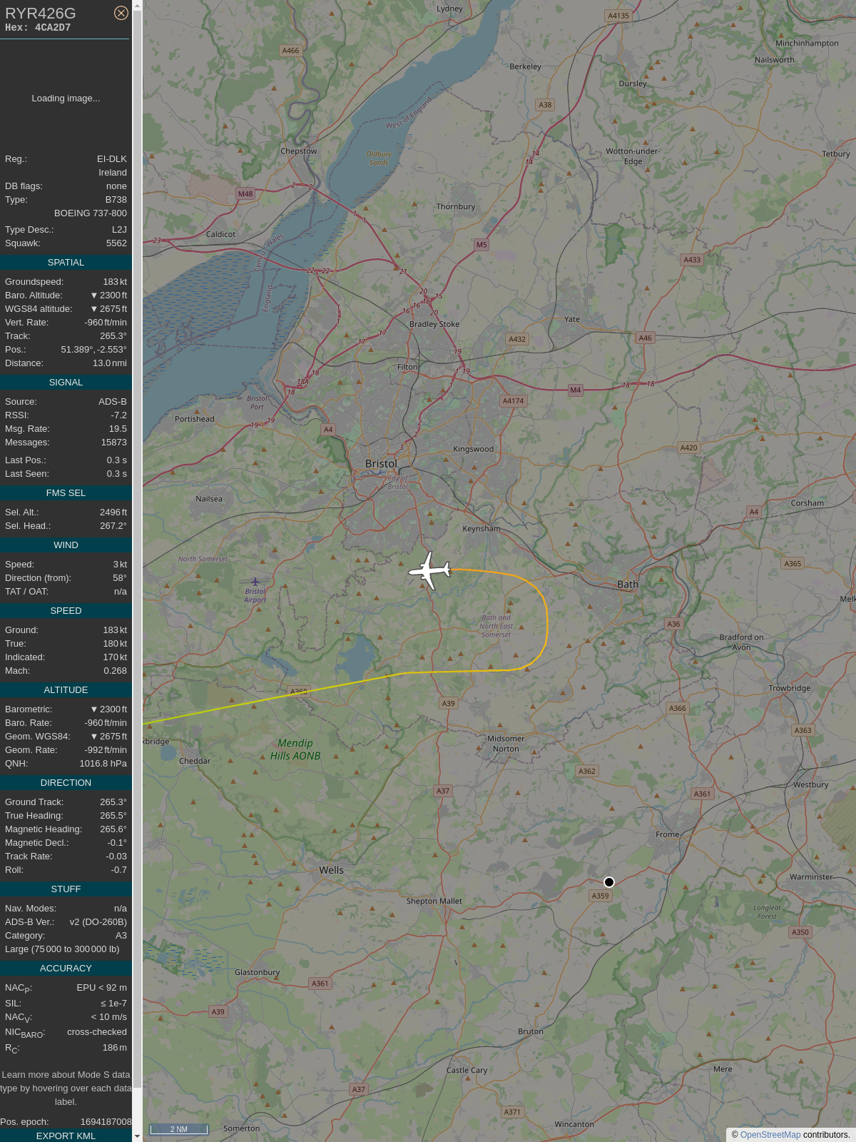 #ryanair #bcn #brs #planefence #adsb #mendip