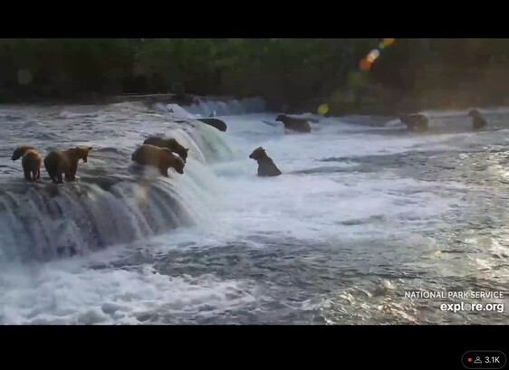Brooks Falls Brown Bears: https://explore.org/livecams/brown-bears/brown-bear-salmon-cam-brooks-falls