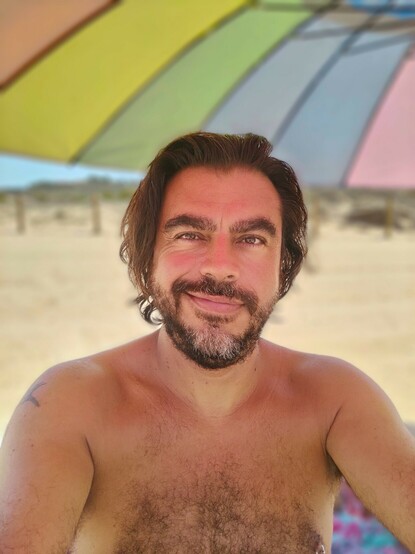 #selfie #bearded #hairy #gay #gayes #gayfr #hairychest #gayotter #dadbod #gayhairy #beach #nipple #beachnudity #eyecontact #thirsttrapThursday