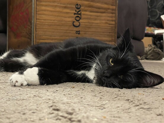 Playtime is over. Nap time is here. #catsofmastodon #cats #tuxedocats #bearisacat