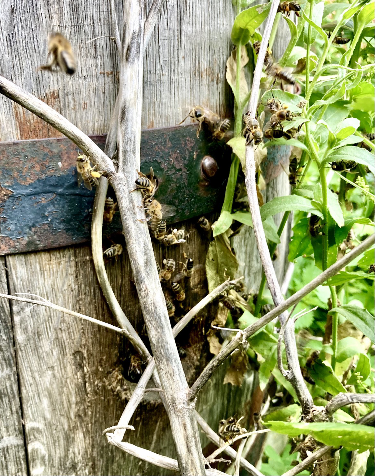 This swarm of wild black Sicilian bees set up their hive two years ago, in an old wine barrel near the winery.