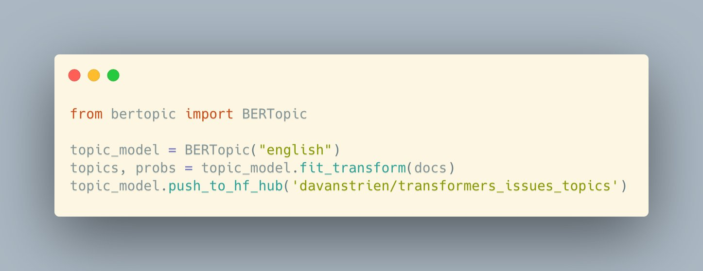 @huggingface hub! #BERTopic is a cutting-edge topic modelling library by @MaartenGr.